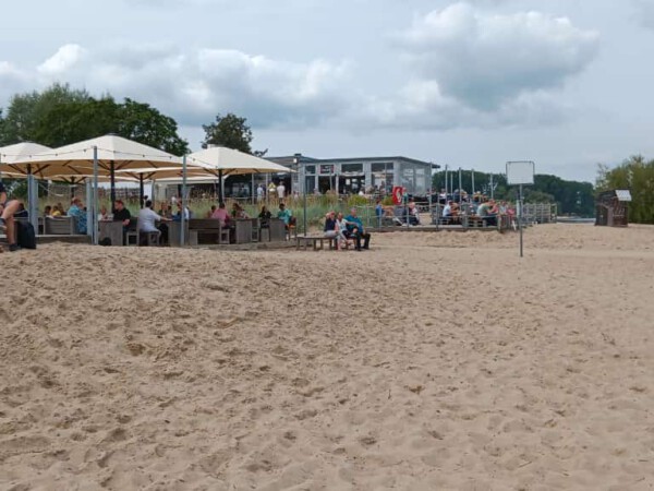 Der Stellplatz liegt direkt hinterm Deich und man ist in einer Minute direkt am Elbstrand.