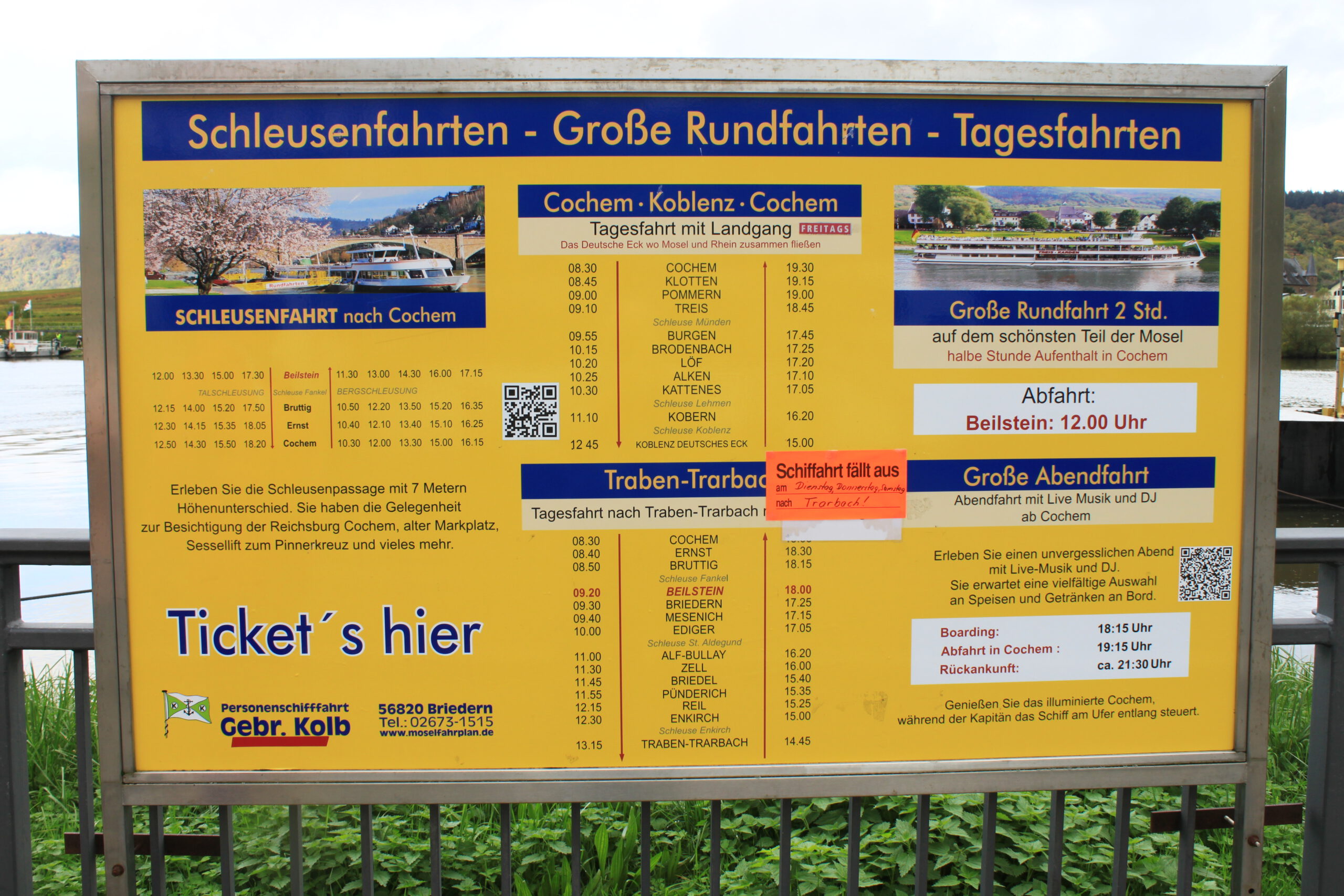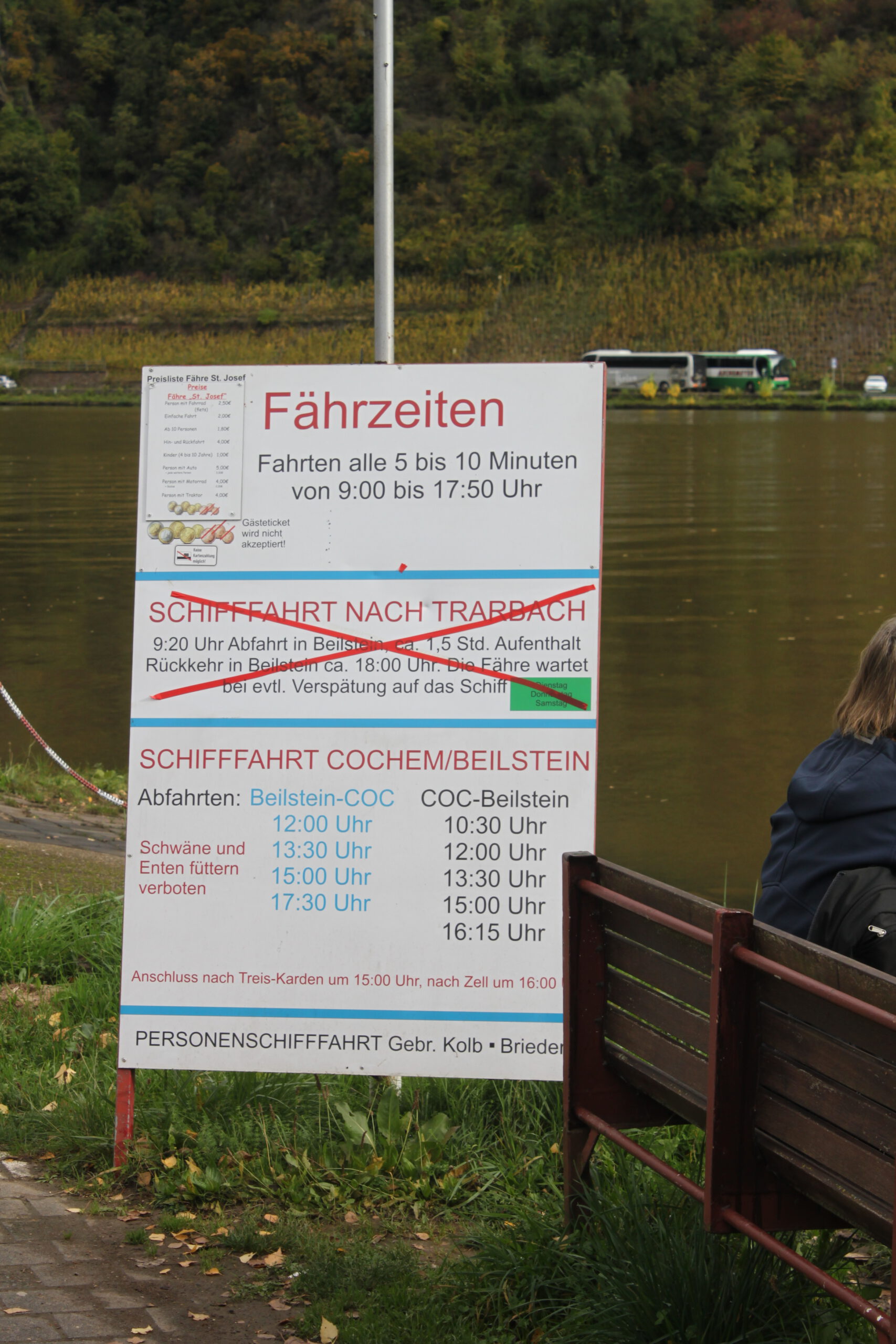Schöner ruhiger Platz mit Möglichkeit zur Weinprobe. Nächstes Geschäft (EDEKA) erst im nächsten Ort (Ernst). Abends gemütliches Zusammensein mit Federweiser und Musik. Wir sind nun zum zweiten Mal hier und diesmal für 2 Tage. Am ersten Abend waren wir mit mehreren Mobilisten zusammen und haben gequatscht und leckeren Wein getrunken. Auf der anderen Moselseite liegt Beilstein, was auf jedenfall einen Besuch wert ist. Mit der kleinen Fähre für € 4,00 für Hin- und Zurück. Kleine Gassen mit vielen Geschäften, Restaurants und Weinkellern. Im oberen Bereich liegt die Kirche St.Josef mit einem Cafe und Restaurant und leckeren Speisen. Oben auf dem Berg ist die Burg Metternich die gut zu Fuß zu erreichen ist. Für € 3,00 Eintritt bekommt einen sehr schönen Überblick über das Moseltal, unbedingt empfehlenswert.