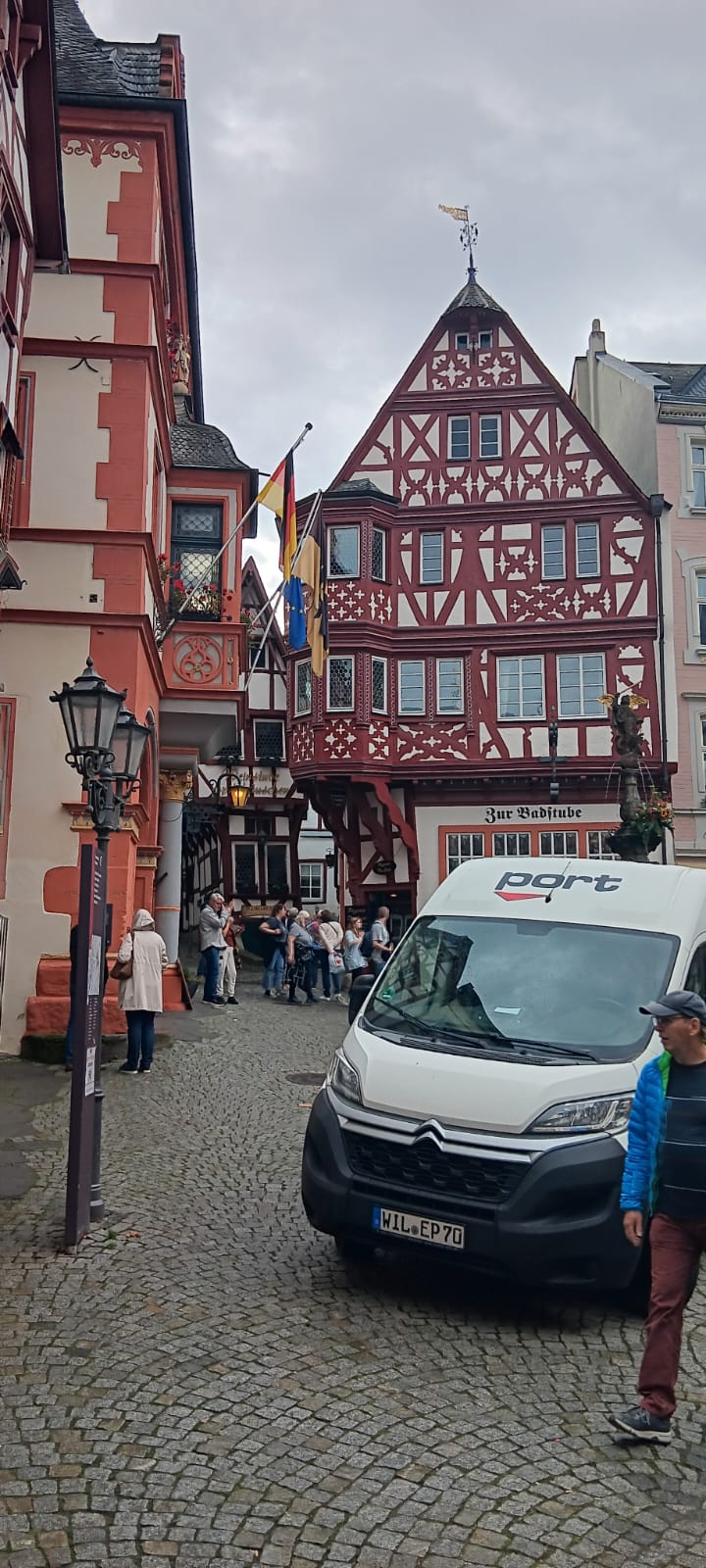 Rasen- und Schotterplatz, fast gerade. Bernkastel-Kues schnell mit dem Rad zu erreichen. Alles im Preis vorhanden, Duschen Zugang mit Code. Könnte mal ein wenig saniert werden, aber sonst alles ok. Der Platz ist zum Vorjahr € 2,00 teurer geworden. Leider ist in diesem Jahr der Platz etwas feucht und deshalb aufgeweicht, was das befahren etwas erschwert. Ein paar Tage später haben wir erfahren, das eine Woche vorher noch Hochwasser an der Mosel war.