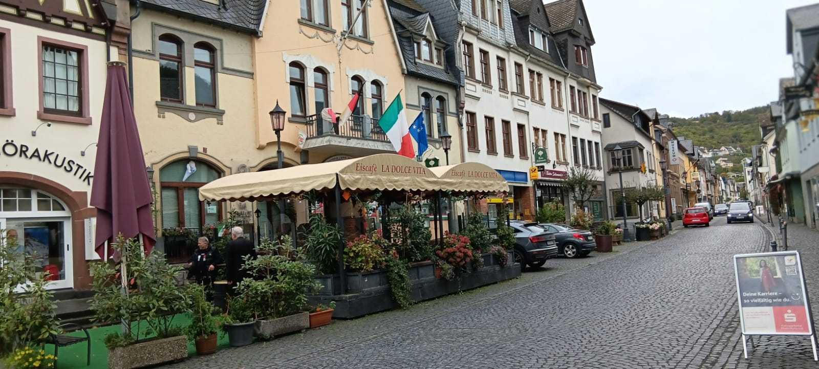 Der Platz ist relativ ruhig, das einzige was man ab und zu hört, ist das Brummen der Schiffe auf dem Rhein.