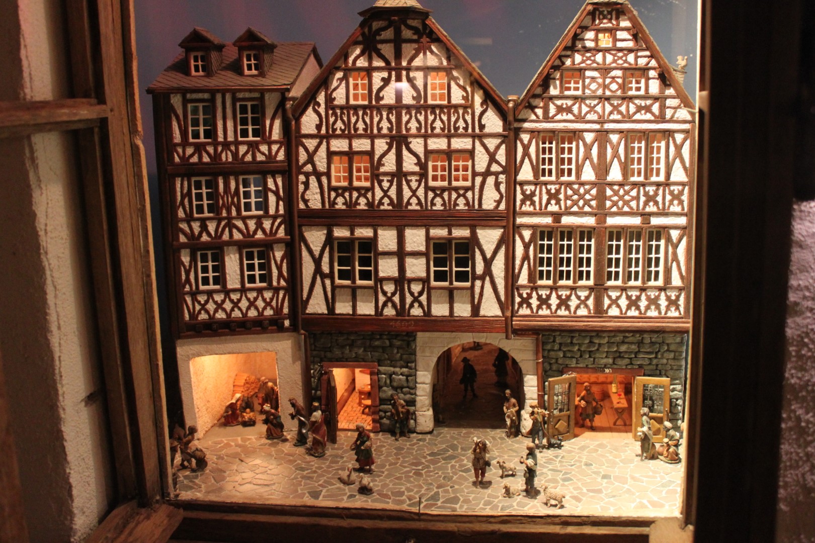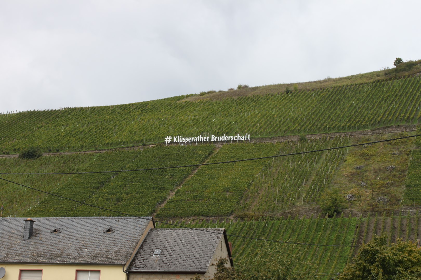 Heute hat es fast den ganzen Tag geregnet. Teilweise standen die Wege auf dem Stellplatz voll mit Wasserpfützen, in denen man locker mal mit den Füßen versinken konnte. Zwischen zwei Regenschauern sind wir in Richtung Klüsserath, um in der Metzgerei etwas Fleisch zu kaufen. Leider war die Metzgerei geschlossen und man kann nur von Dienstag bis Donnerstag und nur mit Vorbestellung dort etwas kaufen. Also wieder zurück zum Stellplatz, vorher aber noch an der Gaststätte des Campingplatzes vorbei. Dort angekommen sahen wir, dass man dort ein paar Kleinigkeiten kaufen konnte. Juchhu es gab wenigsten Eier. Danach gings wieder zum Womo um den nassen Nachmittag zu verbringen. Gegen 16.00 Uhr sind wir dann wieder nach Klüsserath, um zuerst ins Krippenmuseum zu gehen und anschließend zur Bücherlesung von Andreas Winkelmann, der sein neustes Buch „Entführung im Himmelreich“ vorstellte. Zusätzlich gab es noch eine Weinprobe mit drei Weinen, einem Sekt sowie eine Schieferplatte auf der jeweils für zwei Personen Lammsalamie, roher Schinken, ein Fläschen mit spanischem Olivenöl, Griebenschmalz, Obazda und Brot serviert wurde. Nach der Lesung, die spannend und auch lustig war, hatte man die Möglichkeit, das Neueste wie auch ältere Bücher zu kaufen und signieren zu lassen. Nach all dem konnte man noch, wenn man wollte, das Tanzbein zu einer Band schwingen. Alles in allem ein richtig schöner Abend. Eigentlich sollte die Veranstaltung auf dem Stellplatz stattfinden. Da das Wetter aber so schlecht war, wurde die Veranstaltung in die örtliche Festhalle/Turnhalle verlegt. Das Einzige, was wir auf dem Stellplatz negativ empfunden haben, ist das es in einem Container je eine Toilette für Herrn und eine weitere für Damen gibt. Im Vorraum gib es noch ein Urinal und direkt daneben ein kleines Waschbecken. Ich möchte mir nicht vorstellen, wie das gehen soll, wenn hier eine große Veranstaltung stattfindet. Leider kann man die sanitären Einrichtungen auf dem neben liegenden Campingplatz nicht nutzen. Der Stellplatz ist kein Superplatz und bei schönem Wetter kann man hier bestimmt gut chillen. Was man auf jedenfall vorher einplanen sollte ist genügend Lebensmittel mit zu nehmen, da der nächste Supermarkt über 11 Kilometer entfernt ist und zwar in beide Richtungen der Mosel.