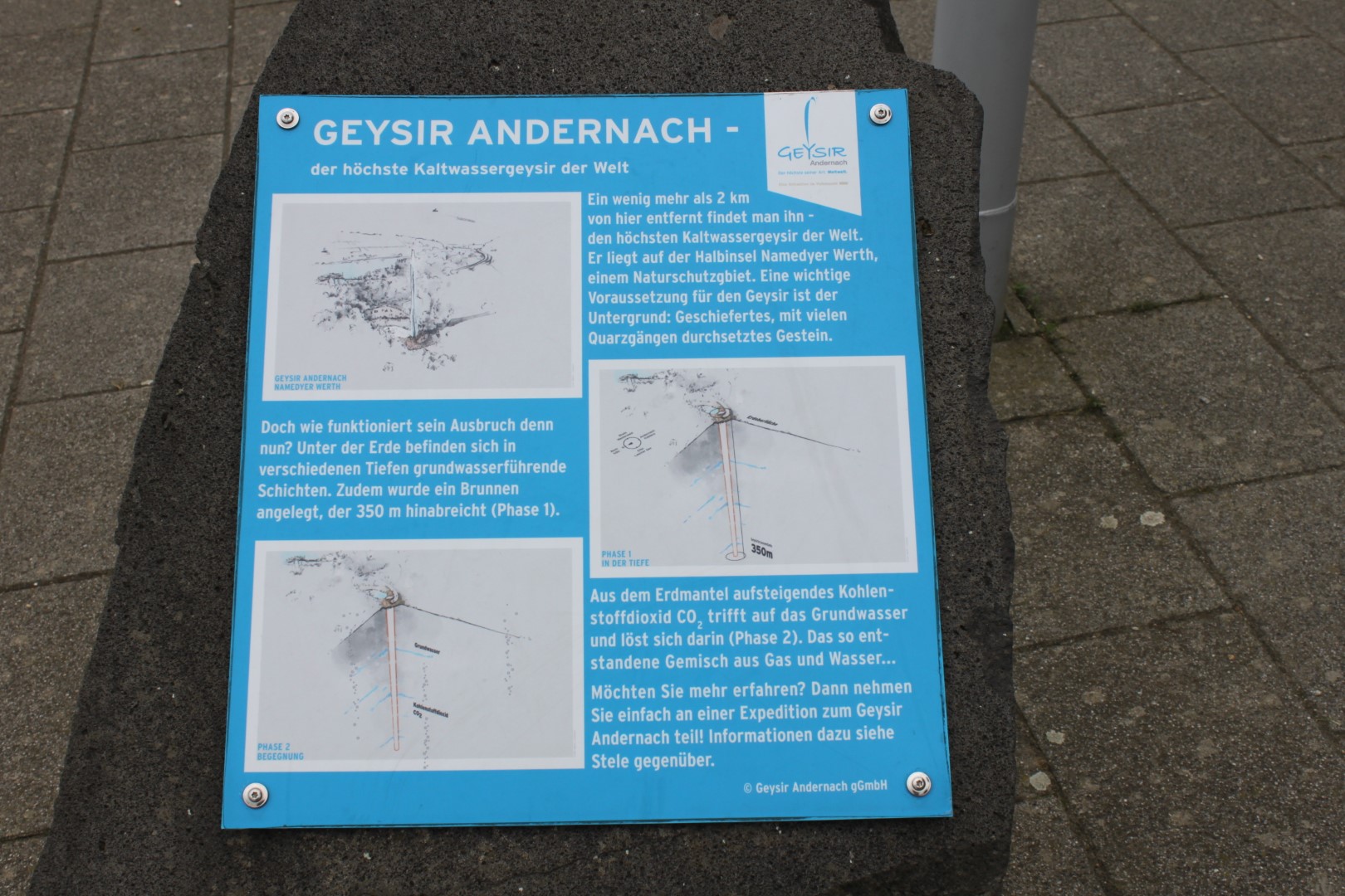 In Andernach angekommen, zuerst einmal einen Stellplatz suchen. Alle Plätze in der ersten Reihe mit Blick auf den Rhein, waren leider schon besetzt, aber machts nichts. Wir haben dann noch einen Platz in der dritten Reihe gefunden aber ohne Strom. Aber kein Problem, wir haben ja genügen Kapazität um 2-3 Tage ohne Stromanschluss durchzuhalten. Danach ging es dann zuerst zum Bollwerk das direkt am Stellplatz ist und von dem man etwas erhöht auf den Rhein schauen kann. Etwas weiter gibt es dann das Geysir-Museum. Dort kann man sehen wie der Geysir von Andernach funktioniert und was alles unter der Erde los ist. Vorher sind wir aber mit dem Schiff von Andernach über Leutersdorf zum Geysir gefahren und haben dort den Ausbruch des ca. 60 Meter hohen Kaltwasser Geysir erlebt was sehr interesannt war. Vor ca. 2 Jahren waren wir extra auf Island um dort die Geysire zu erleben, obwohl wir den eigenen Geisyr fast vor der Haustüre haben. Nach dem spektakulären Ausbruch ging es dann wieder mit dem Schiff über Leutersdorf nach Andernach und dann zu einem Rundgang durch die Altstadt von Andernach. Da es Sonntag war, waren natürlich keine Geschäfte geöffnet und es das enizige was offen war, waren Restaurants und Imbisse. Da wir noch nichts zu Mittag gegessen hatten sind wir dann spontan in den Dönerladen von Lukas Podalksi. Es war nicht schlecht, aber empfehlenswert war er nicht. Leider war es etwas unsauber und etwas teuer. Auch der Service war unter mittelmass, ok wir hatten Hunger und es war sonst kaum was offen. Danach ging es dann wieder zum Wohnmobil wo wir unseren letzten Abend verbrachten, da es am nächsten Tag wieder Richtung Heimat ging.