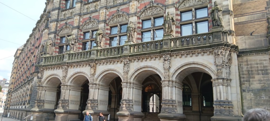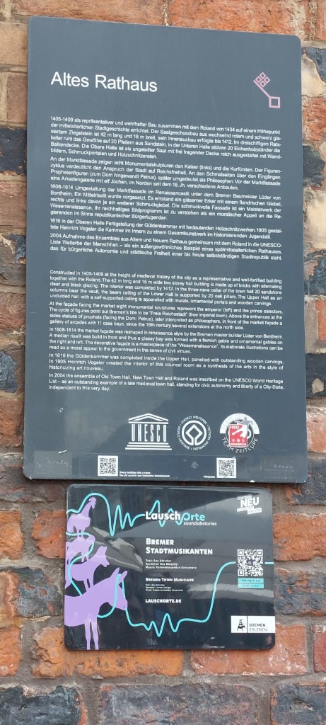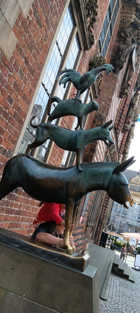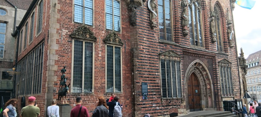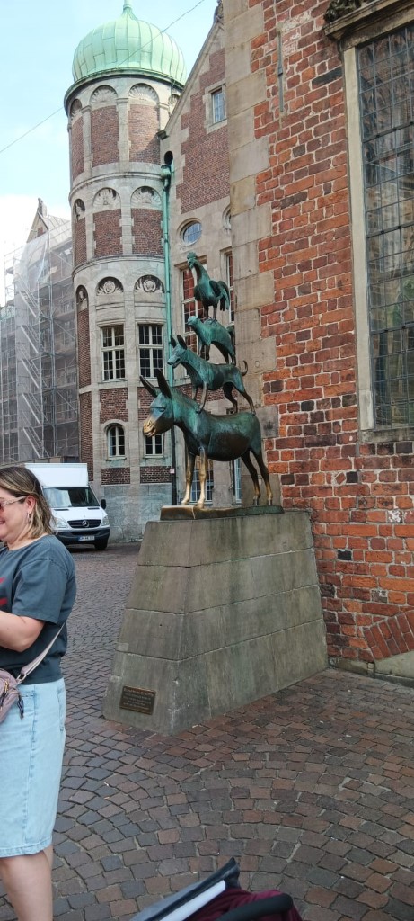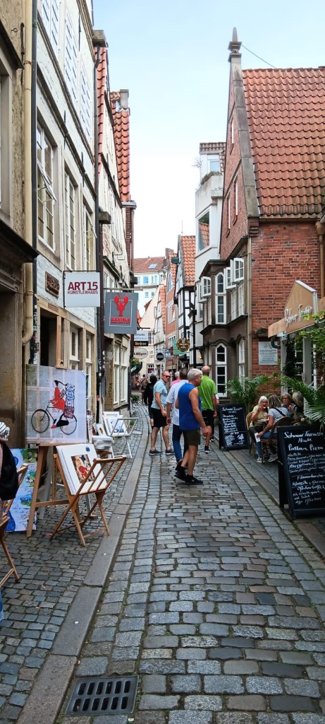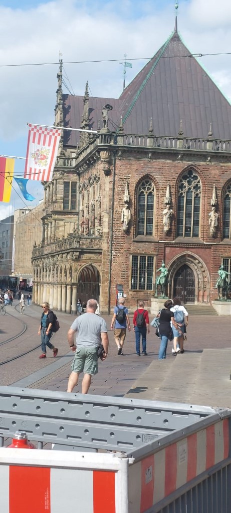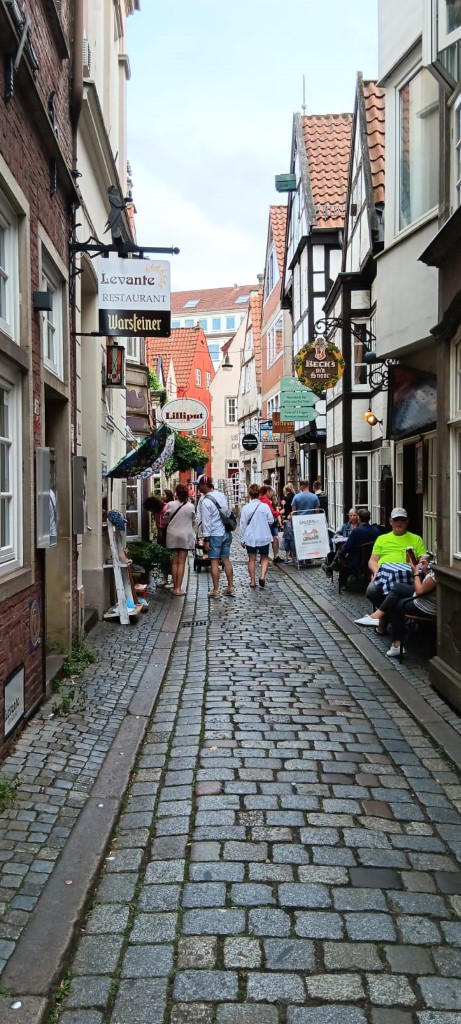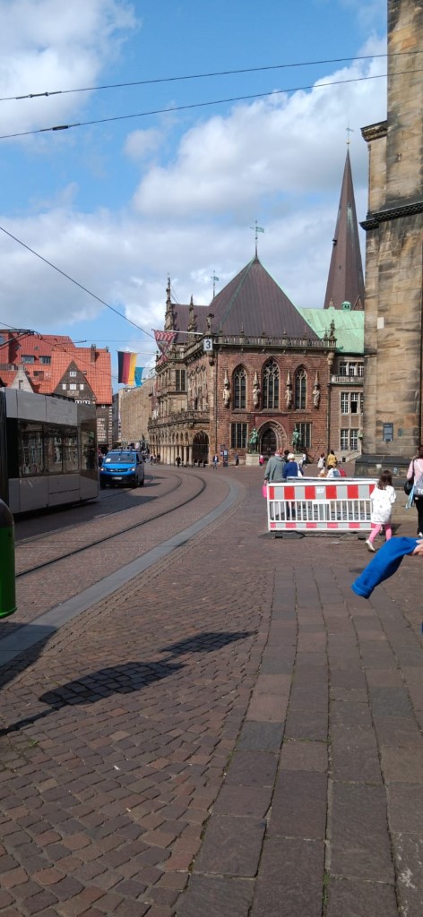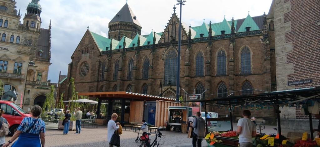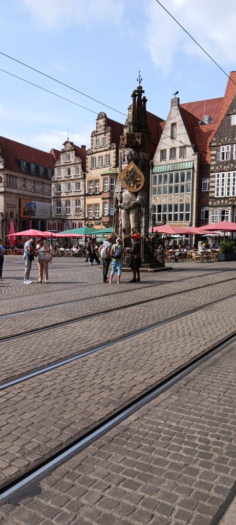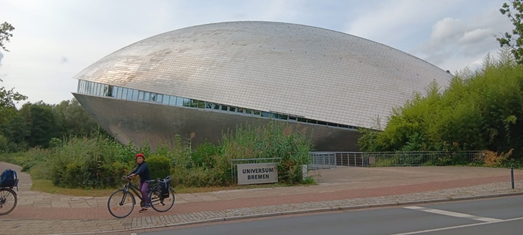 Heute sind wir endlich in Bremen angekommen. Zuerst einmal quer durch die Stadt und dann in Richtung Stellplatz. Der Platz liegt genau auf der Insel die es in Bremen gibt. Dort angekommen mussten wir zuerst einmal ein Ticket ziehen und dann einen beliebigen Stellplatz suchen. Wagen aufgestellt, Fahrräder abgebaut und ab ins Zentrum. Das erste was wir besichtigt haben war die St. Petri Kirche und anschließend zum Roland und den Bremer Stadtmusikanten. Danach ging es dann zur "Markthalle Acht". Zuerst dachten wir das das eine Markthalle wie in Stuttgart ist mit vielen Ständen, Leckereien, Käse und Kräutern. Aber falsch gedacht, es was eine Fressmeile mit vielen Ständen aus allen Ecken der Welt. Alles so lecker das man lange überlegen musste was man essen sollt. Wir haben uns dann für Mexikanisch entschieden und waren Überrascht für kleines Geld eine riesengroße Portion Burritos zu bekommen. Eigentlich hätte eine Portion für uns beide gereicht. Mit vollem Bauch dann ab in die Altstadt Schnoor mit vielen kleinen Gässchen und kleinen Geschäften und Restaurants. Eine Besonderheit in Bremen ist noch das "Universum" in der Nähe der Universität, am besten mit der Linie 6 zu erreichen. Dort steht ein riesig großes UFO in dem wohl eine Ausstellung mit vielen Experimenten zu sehen ist. Leider war es schon zu spät um die Ausstellung zu sehen. Also wieder zurück zum Wohnmobil. Auf dem Stellplatz gibt es ein großes Manko. Der Platz ist ringsherum mit großen Bäumen bepflanzt, so das ein SAT-Empfang so gut wie unmöglich ist. Aus diesem Grund hat der Betreiber mehrere SAT-Schusseln in größerer Höhe aufstellen lassen und jeder Platz hat ein Kabel das er direkt an den eigenen Receiver oder TV anschließen kann. Was nicht so schön war, sind die Sanitären Einrichtungen. Dort gibt es zwar neuere und geräumige Duschen, aber diese funktionieren nur zum Teil. Für ein oder zwei Nächte ist der Platz in Ordnung wenn man sich Bremen einmal richtig ansehen möchte.
