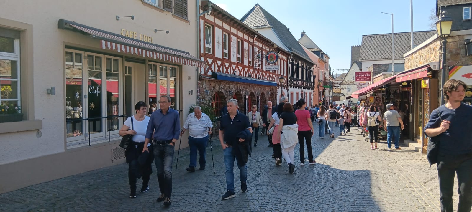 Heute sind wir los auf unsere Toscana Tour und haben unsere erste Etappe in Bingen erreicht. Der Wohnmobilpark ist von der Autobahn aus sehr gut Beschildert. Wir hatten den Platz schon mehrere Wochen im voraus gebucht und bei der Ankunft wurden wir schon vom Platzwart persönlich begrüßt und auf den Platz eingewiesen. Noch eine kurze Erklärrunde was man alles auf dem Platz vorfindet. NAchdem wir alles aufgebaut hatten, sind wir dann mit den Rädern in Richtung Bingener Hafen und mit der Autofähre rüber nach Rüdesheim. Fahrräder abgestellt und ab in die Drosselgasse, mal sehen was wir vorfinden. Viele kleine Geschäfte, Restaurants und vieles für die Touristen. Am Ende der Drosselgasse sind wir dann zuerstmal "Graf von Rüdesheim" Hier gab es ein sehr leckeres Winzerschnitzel für € 11,90, eigentlich kenne ich das unter Holsteinschnitzel aber es war lecker und mit den Bratkartoffeln mehr als genug. Danach ging es dann mit der Seilbahn rauf auf den Berg. Leider mussten wir etwas anstehen und zuerst einmal zwei Stockwerke hoch gehen, bevor wir an die Sesselbahn kamen, hat was gedauert. Einmal rauf und runter kosten pro Erwachsener € 11.00. Oben angekommen haben wir dann einen kleinen Rundgang gemacht und uns das große Niederwalddenkmal angesehen. Dann noch was die Umgebung ansehen und wieder runter nach Rüdesheim. Unten angekommen wollten wir uns noch ein Eis essen. Für die Kugel mussten wir € 2,00 geben, etwas teuer, aber so ist das in den Touristenburgen. Danach ging es dann wieder rüber nach Bingen und wieder zurück zum Stellplatz. Dort haben wir dann noch etwas das schöne Wetter genossen und haben den Abend ausklingen lassen. Fazit, hier kommen wir bestimmt noch einmal, damit wir auch Bingen genauer kennenlernen, dann aber für mindestens zwei bis drei Tage.