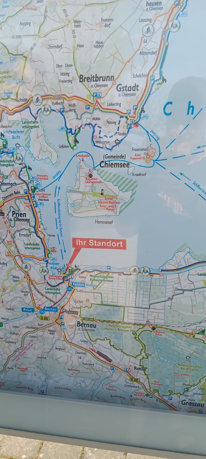 Eigentlich wollten wir direkt nach Bernau am Chiemsee, sind aber, da wir relativ früh in Garmisch losgefahren sind, noch kurz nach Rosenheim rein. Normalerweise wollten wir erst in Österreich tanken, aber in Rosenheim kostete der Diesel € 1,54, das war im Moment recht preiswert. Im Zentrum von Rosenheim angekommen sind wir natürlich zuerst zu den Rosenheim Cops gefahren. Oder besser gesagt, zum alten Rathaus was immer als Polizeipräsidium ausgegeben wird. Schnell ein paar Photos gemacht und mal reingesehen ob es auch innen so aussieht wie im Fernseher. Nein, auch hier wird gemogelt, alles ganz anders. Danach sind wir dann noch kreuz und quer durch die Innenstadt und danach in Richtung Bernau. Am Stellplatz angekommen wird man zuerst einmal per Nummernschild gescannt und die Schranke öffnet sich. Platz suchen, im Parkautomat alle erforderlichen Eingaben machen, Karte aufladen, Strom anschliessen, Stromanschluss mit der Karte aktivieren und endlich fertig. Jetzt noch ein schöner Spaziergang am Chiemsee entlang und relaxen. Die Sanitären Anlagen sind in Ordnung, könnten aber etwas besser sein. Was etwas stört ist die angrenzende Autobahn.