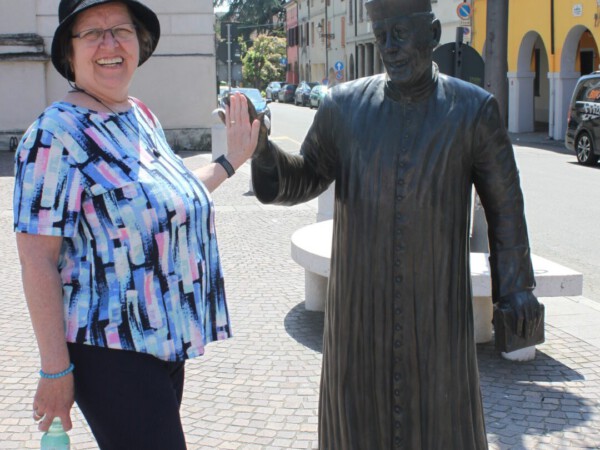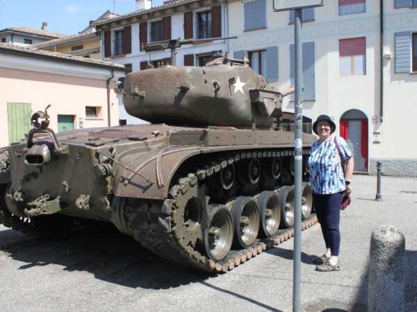 Heute Morgen zuerst einmal zusammenpacken, abspülen und ab in Richtung Brescello. Diesmal ging es über die Autobahn. Kurz vor Brescello mussten wir etwas umplanen, da der direkte Weg leider eine Baustelle war, aber alles kein Problem. In Brescello angekommen sind wir auf einen kleinen Parkplatz direkt in der Nähe der Kathedrale gefahren. Von hier aus waren wir innerhalb 2 Minuten genau im Zentrum des Geschehens. Überall Don Camillo und Peppone in den Fenstern der Geschäfte. Vor der Kirche stand eine Figur von Don Camillo und auf dem gegenüber liegendem Platz vor dem Rathaus eine Figur von Peppone. Kurz ein Bild mit beiden Figuren und dann noch einen Abstecher in die Kirche. Im Fernsehen sieht alles immer etwas größer oder kleiner, wie es eigentlich ist. Die Kirche kam mir viel größer und der Kirchenvorplatz viel kleiner vor wie im Film. Gegenüber der Kirche gab es ein Cafe Don Camillo und gegenüber dem Rathaus das Cafe Peppone. Das Cafe Don Camillo sah um Längen besser aus und wir sind dann kurz rein um ein Panini und einen Kaffee zu trinken. Danach wieder zurück zum Wohnmobil und ab zum Stellplatz PITSTOP EMILIA by River Passion in Borsetto. Anmelden unter der Telefonnummer an der Rezeption und kurz drauf kam jemand, um uns einzuweisen. Wir waren die einzigen auf dem Platz und konnten uns direkt auf den Stellplatz 1 am Wasser stellen. Die Sanitären Einrichtung waren sauber und gepflegt, zum Duschen braucht man einen Chip, den man an der Rezeption für einen Euro erwerben kann. Duschen kann man 3 Minuten lang, das gut ist, das man das Wasser auch mal ausschalten kann und die Zeit wird gestoppt. Ich hatte zuerst einmal Zweifel was für ein Stellplatz das ist, ab er den Stellplatz kann man nur empfehlen.