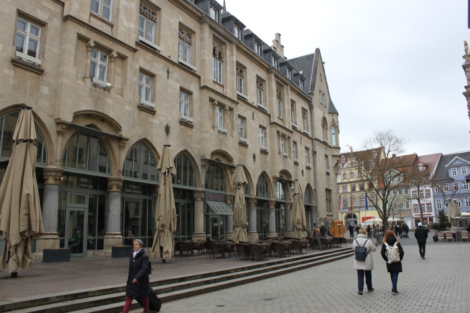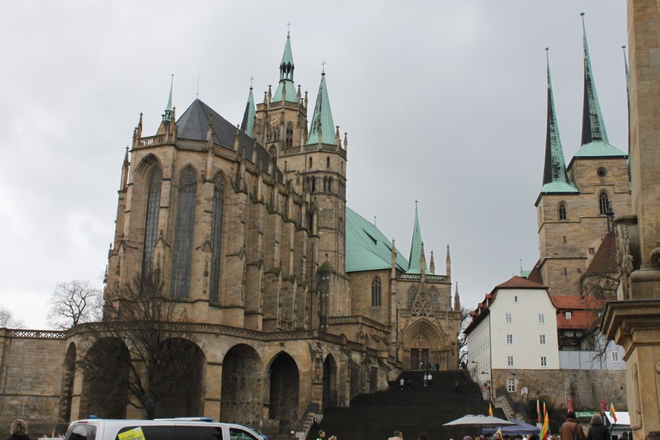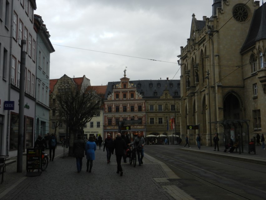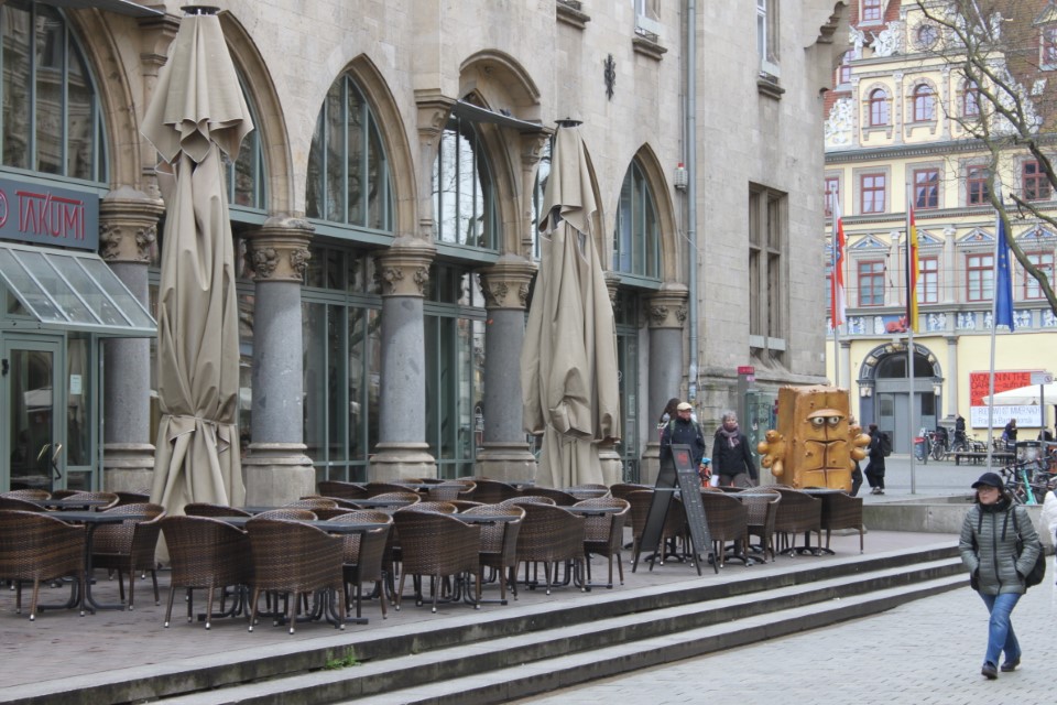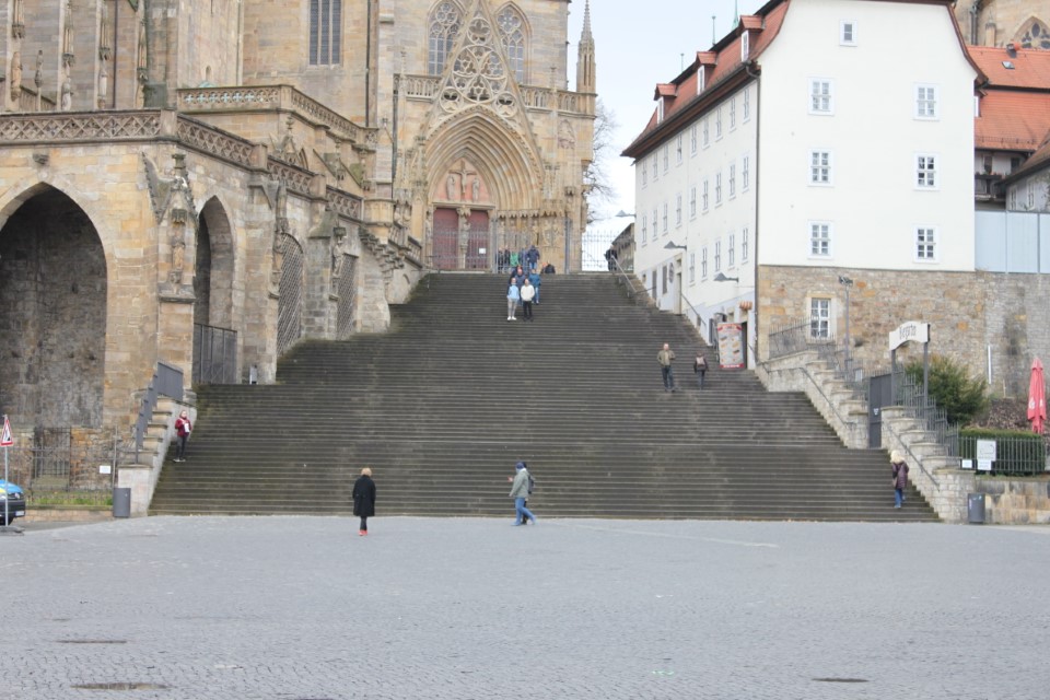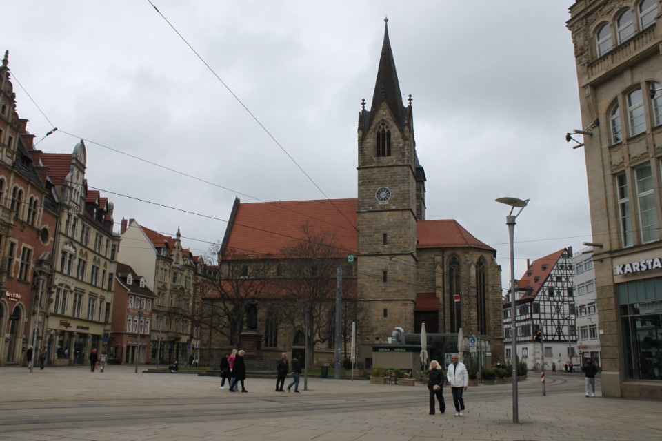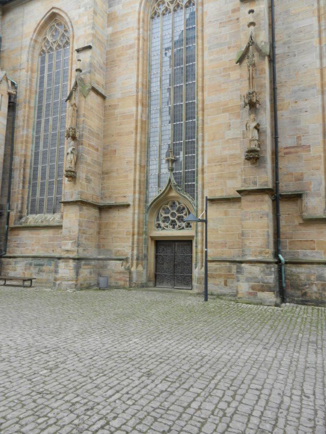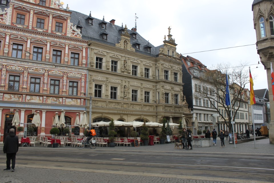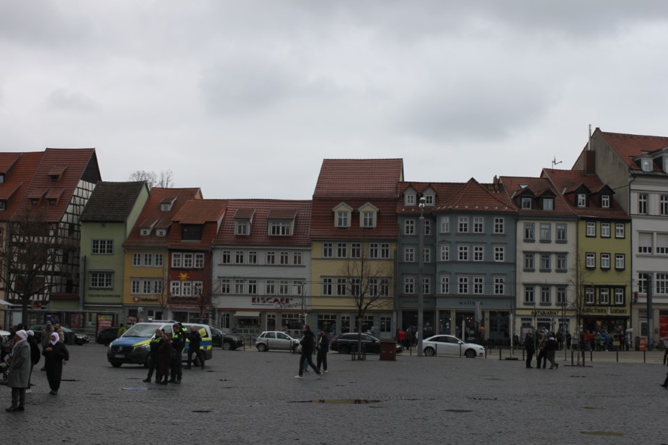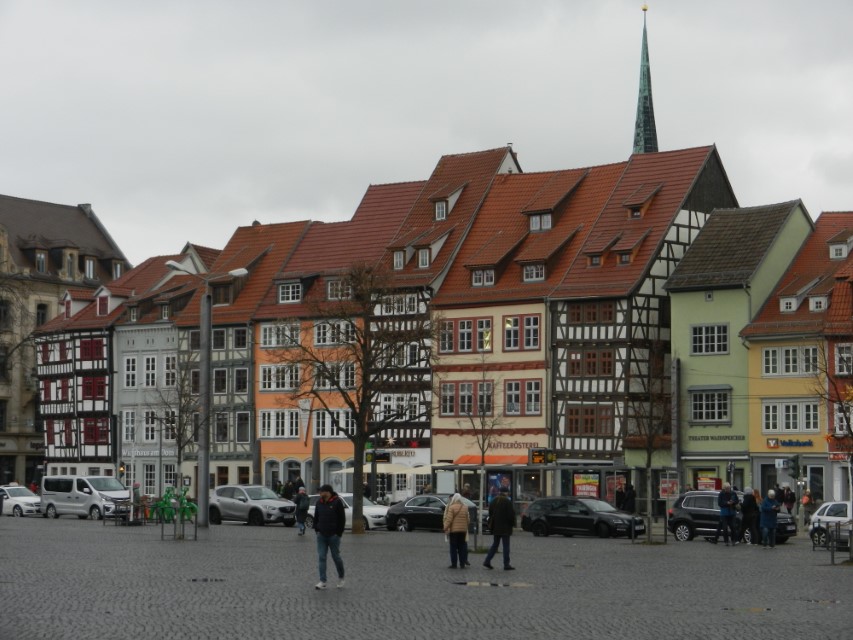 Heute ging es nach Erfurt, aber zuerst einmal rein in die Stadt, da der Platz erst ab 13.00 Uhr angefahren werden kann. Und schon ging das Chaos los. In Erfurt einen Parkplatz zu bekommen ist eine Katastrophe. Außerhalb der angegebenen Parkhäusern, wo wir mit einen Womo eh nicht reinkommen, gibt es nur "Anwohner Parkplätze". Nach etlichen Versuchen haben wir dann etwas außerhalb der City einen Parkplatz an einem LIDL gefunden. Dann ging es in Richtung Altstadt durch kleine Gässchen und vorbei an vielen kleinen Geschäften und Sehenswürdigkeiten. Am Rathaus haben wir dann noch eine Figur von "Bernd das Brot" entdeckt und auch direkt Foto mäßig das ganze festgehalten. Danach ab zum Domplatz auf der eine kleine Demo aber mit viel Polizei stattfand. Dahinter ging es dann mit 70 Stufen rauf zum Erfurter Dom der sehr imposant und auch sehr interessant war. Unten vor dem Domplatz gab es mehrere Gaststätten, aber eine fiel uns direkt ins Auge, dass "Restaurant Schnitzlers". Ein Restaurant das man nur sehr empfehlen kann, wenn man gerne Schnitzel ist. Viele diverse Schnitzel mit ganz besonderen Beilagen, einfach Lecker. Im Anschluss ging es dann wieder zum Wohnmobil und dann in Richtung Wohnmobilplatz "Tor zur Stadt Erfurt". Der Stellplatz liegt oberhalb von Erfurt in der Nähe des Messegeländes und gut zu finden. Hier angekommen sind wir zuerstmal in die Rezeption und sind dort von einem sehr freundlichen Herrn empfangen worden und haben dort einen Platz zugewiesen bekommen. War alles kein Problem, da der Platz nur mit ein paar Wohnmobilen belegt war. Bezahlt wurde im voraus mit € 10,00 Pfand für eine Chipkarte und € 5,00 Aufladung für den Strom. Was nicht gebraucht wurde, wird am nächsten Tag wieder zurück gebucht. Die Sanitären Einrichtungen waren vom allerbesten, sauber und vielfältig. Auch die Küche mit ihren Spül- wie auch Kochplätzen, alles vom allerbesten und sehr sauber. Das einzige was ich gesucht habe, war eine Stelle zum Entsorgen der Chemietoilette, dafür gibt es aber einen Automat, der den Behälter automatisch leert. Kostenpreis normalerweise € 3,00, aber für Benutzer ist es mit der Chipkarte kostenlos.