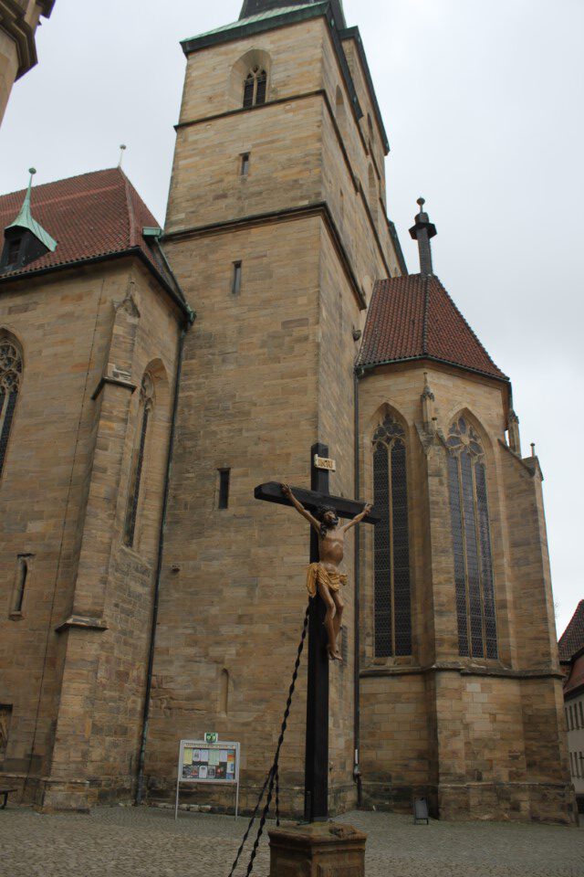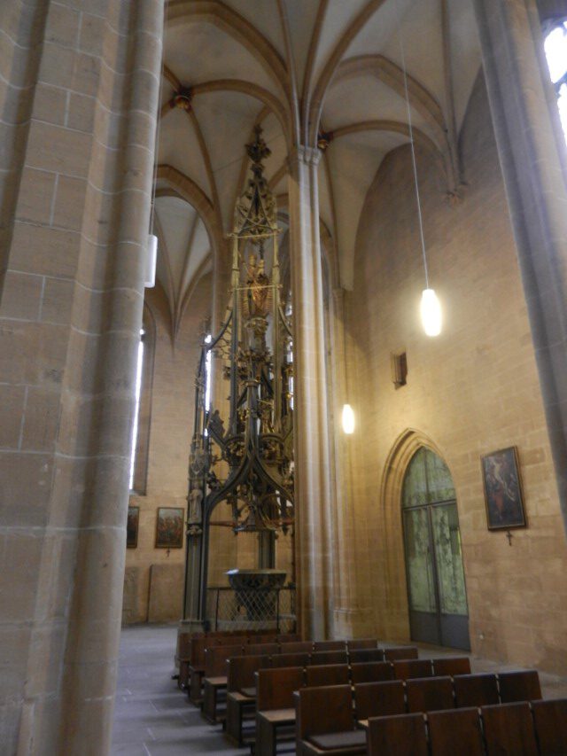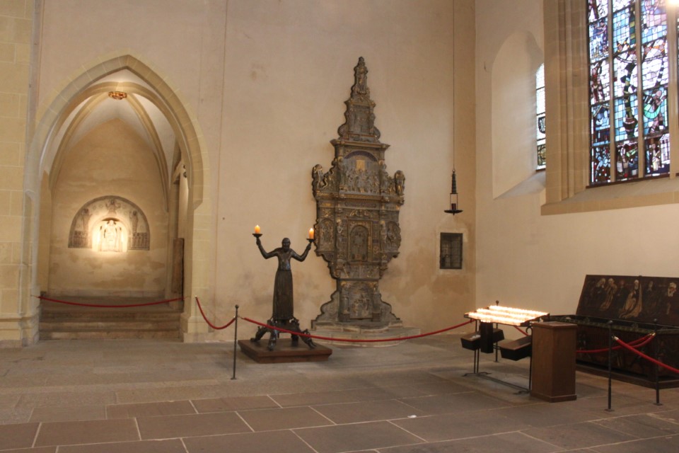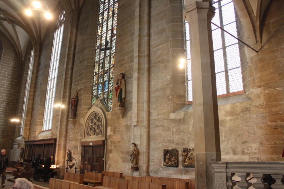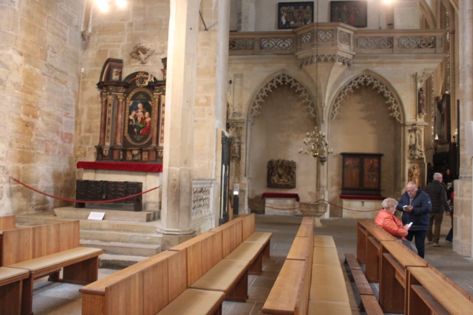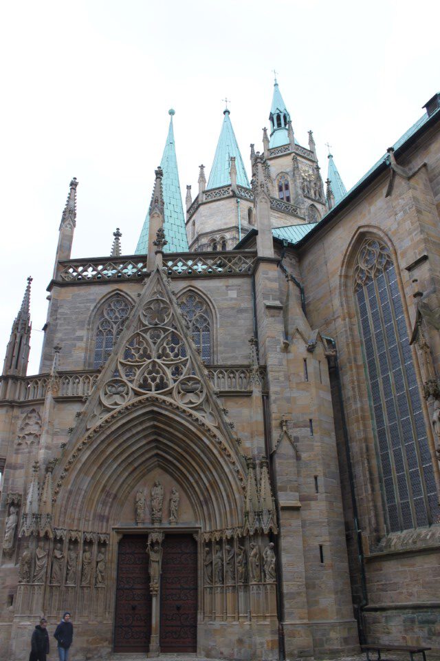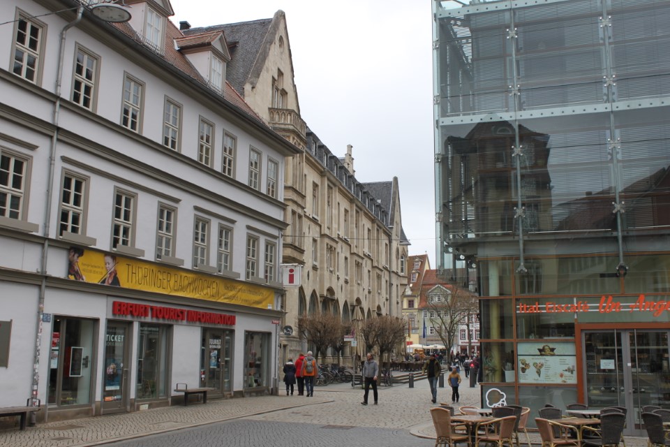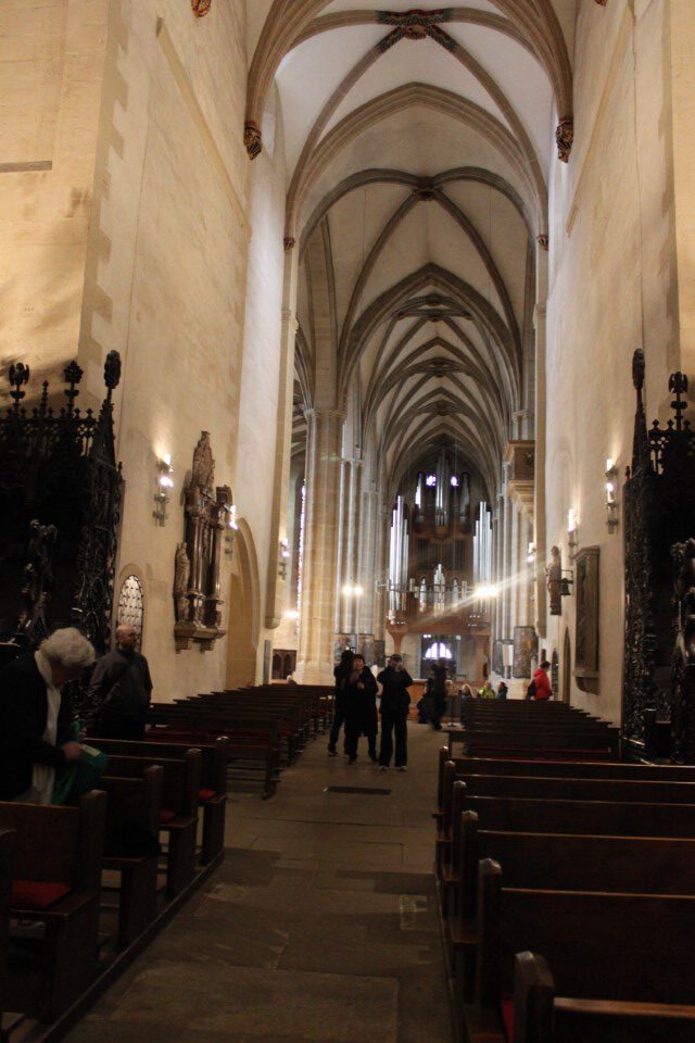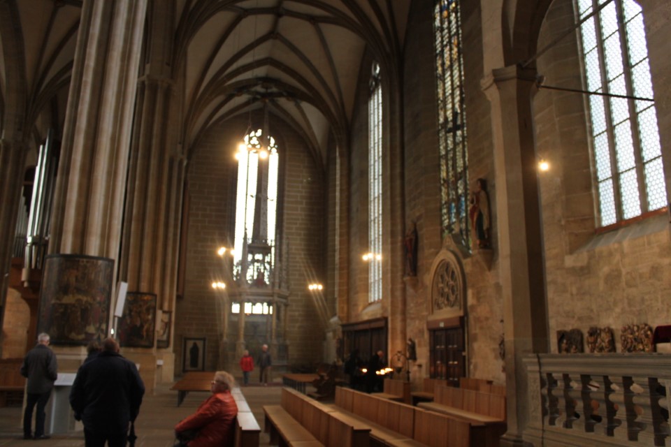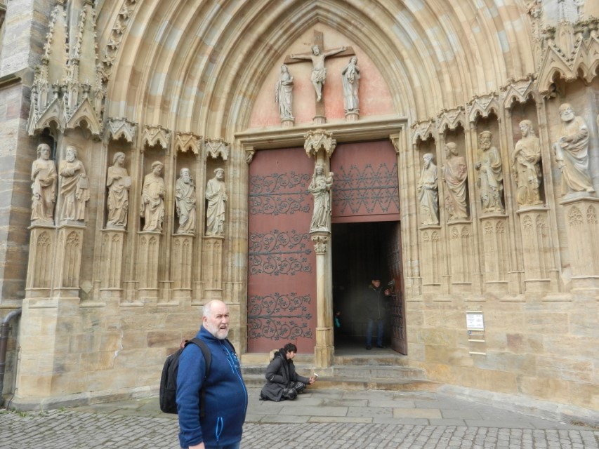 Heute ging es nach Erfurt, aber zuerst einmal rein in die Stadt, da der Platz erst ab 13.00 Uhr angefahren werden kann. Und schon ging das Chaos los. In Erfurt einen Parkplatz zu bekommen ist eine Katastrophe. Außerhalb der angegebenen Parkhäusern, wo wir mit einen Womo eh nicht reinkommen, gibt es nur "Anwohner Parkplätze". Nach etlichen Versuchen haben wir dann etwas außerhalb der City einen Parkplatz an einem LIDL gefunden. Dann ging es in Richtung Altstadt durch kleine Gässchen und vorbei an vielen kleinen Geschäften und Sehenswürdigkeiten. Am Rathaus haben wir dann noch eine Figur von "Bernd das Brot" entdeckt und auch direkt Foto mäßig das ganze festgehalten. Danach ab zum Domplatz auf der eine kleine Demo aber mit viel Polizei stattfand. Dahinter ging es dann mit 70 Stufen rauf zum Erfurter Dom der sehr imposant und auch sehr interessant war. Unten vor dem Domplatz gab es mehrere Gaststätten, aber eine fiel uns direkt ins Auge, dass "Restaurant Schnitzlers". Ein Restaurant das man nur sehr empfehlen kann, wenn man gerne Schnitzel ist. Viele diverse Schnitzel mit ganz besonderen Beilagen, einfach Lecker. Im Anschluss ging es dann wieder zum Wohnmobil und dann in Richtung Wohnmobilplatz "Tor zur Stadt Erfurt". Der Stellplatz liegt oberhalb von Erfurt in der Nähe des Messegeländes und gut zu finden. Hier angekommen sind wir zuerstmal in die Rezeption und sind dort von einem sehr freundlichen Herrn empfangen worden und haben dort einen Platz zugewiesen bekommen. War alles kein Problem, da der Platz nur mit ein paar Wohnmobilen belegt war. Bezahlt wurde im voraus mit € 10,00 Pfand für eine Chipkarte und € 5,00 Aufladung für den Strom. Was nicht gebraucht wurde, wird am nächsten Tag wieder zurück gebucht. Die Sanitären Einrichtungen waren vom allerbesten, sauber und vielfältig. Auch die Küche mit ihren Spül- wie auch Kochplätzen, alles vom allerbesten und sehr sauber. Das einzige was ich gesucht habe, war eine Stelle zum Entsorgen der Chemietoilette, dafür gibt es aber einen Automat, der den Behälter automatisch leert. Kostenpreis normalerweise € 3,00, aber für Benutzer ist es mit der Chipkarte kostenlos.