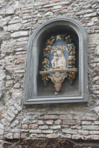 Kurz vor Anghiari, konnte man schon die Altstadt sehen mit ihren Türmen und hohen alten Häusern hoch oben über der Stadt. Die Hauptstraße ist so steil, dass man über eine Serpentinenstraße nach oben gelotst wird. Oben angekommen sind wir dann auf den Hof „Wohnmobilstellplatz Agriturismo Val della Pieve“. Leider hatten wir nicht reserviert und die 10 Stellplätze waren schon besetzt. Ich hatte zwar zweimal versucht den Hof anzuschreiben, habe aber leider keine Antwort bekommen, kann aber auch mein Fehler gewesen sein. Aber kein Problem, wir konnten uns dann an der Seite in Richtung Straße auf einen zusätzlichen Stellplatz positionieren. Die Dame, die uns empfing, sprach zwar nur italienisch, aber sie war sehr freundlich und mit Händen und Füßen wurden wir uns einig. Mit allen drum und dran kostet der Stellplatz € 20. Bei dem Stellplatz, der Aussicht und dem schönen Ort ein angemessener Preis. Ein absolutes Muss ist der Rundgang durch den alten Bereich mit ihren alten Häusern. Nach einem Rundgang durch Anghiari, fing es dann plötzlich an zu Regnen und zu Donnern. Zum Glück dauerte es nicht lange und der Regen lies nach. Der Platz ist angenehm und das Personal sehr zuvorkommend und freundlich. Die Sanitären Anlagen sind sauber und es wird regelmäßig sauber gemacht.