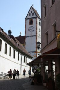 Heute ging es vom Gardasee direkt in Richtung Füssen. Wir sind schon etwas früher als normal losgefahren, da wir etwas über 4,5 Stunden unterwegs sind. Am Ende waren es dann 5 Stunden. Zuerst einmal ca. 21 Km entlang vom Gardasee und dann noch ungefähr 30 km bis zur A22. Ab da ging es dann etwa 200 Km noch durch Italien und dann ca. 150 Km durch Österreich und ab durch den „Grenztunnel Füssen“ und wir waren wieder in Deutschland. In Füssen angekommen sind wir direkt zu den drei Wohnmobilplätzen in der Abt-Hafner-Straße gefahren. Dort angekommen haben wir zuerst einmal versucht noch einen Stellplatz zu bekommen. Bei allen drei Stellplätzen hieß es zuerst einmal „Alles voll“. Beim „Wohnmobilplatz Füssen /Campers Stop“ haben wir dann noch einen Außen Platz bekommen. Das Einzige, was wir nicht hatten, war ein Stromanschluss, aber das war kein Problem. Normalerweise kostet der Platz € 25 plus € 5 für Strom, der Außen Stellplatz € 20,00. In beiden Preisen ist die Kurtaxe für 2 Personen enthalten und man kann mit der Kurkarte kostenlos den örtlichen Bus benutzen. Eigentlich wollten wir zum Schloss Neuschwanstein, aber das wäre aus Zeitgründen zu stressig geworden. Also haben wir kurzfristig umdisponiert und sind mit dem Bus in die Altstadt. Der Bus fährts ca. 200 Meter vom Stellplatz entfernt ab, leider nur etwa einmal pro Stunde. Das gleiche gilt für den Rückweg. In der Nähe des Stellplatzes befinden sich mehrere Einkaufsgeschäfte die Fußläufig erreichbar. Je nach dem, wollen wir am nächsten Tag, bevor wir uns in Richtung Ulm machen, doch noch einen Abstecher zum Schloss machen.