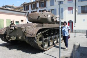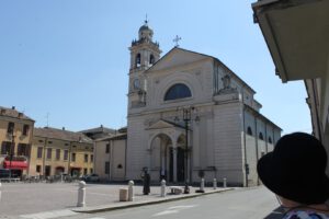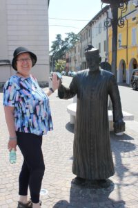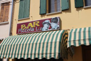 Heute Morgen zuerst einmal zusammenpacken, abspülen und ab in Richtung Brescello. Diesmal ging es über die Autobahn. Kurz vor Brescello mussten wir etwas umplanen, da der direkte Weg leider eine Baustelle war, aber alles kein Problem. In Brescello angekommen sind wir auf einen kleinen Parkplatz direkt in der Nähe der Kathedrale gefahren. Von hier aus waren wir innerhalb 2 Minuten genau im Zentrum des Geschehens. Überall Don Camillo und Peppone in den Fenstern der Geschäfte. Vor der Kirche stand eine Figur von Don Camillo und auf dem gegenüber liegendem Platz vor dem Rathaus eine Figur von Peppone. Kurz ein Bild mit beiden Figuren und dann noch einen Abstecher in die Kirche. Im Fernsehen sieht alles immer etwas größer oder kleiner, wie es eigentlich ist. Die Kirche kam mir viel größer und der Kirchenvorplatz viel kleiner vor wie im Film. Gegenüber der Kirche gab es ein Cafe Don Camillo und gegenüber dem Rathaus das Cafe Peppone. Das Cafe Don Camillo sah um Längen besser aus und wir sind dann kurz rein um ein Panini und einen Kaffee zu trinken. Danach wieder zurück zum Wohnmobil und ab zum Stellplatz PITSTOP EMILIA by River Passion in Borsetto. Anmelden unter der Telefonnummer an der Rezeption und kurz drauf kam jemand, um uns einzuweisen. Wir waren die einzigen auf dem Platz und konnten uns direkt auf den Stellplatz 1 am Wasser stellen. Die Sanitären Einrichtung waren sauber und gepflegt, zum Duschen braucht man einen Chip, den man an der Rezeption für einen Euro erwerben kann. Duschen kann man 3 Minuten lang, das gut ist, das man das Wasser auch mal ausschalten kann und die Zeit wird gestoppt. Ich hatte zuerst einmal Zweifel was für ein Stellplatz das ist, ab er den Stellplatz kann man nur empfehlen.