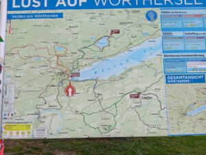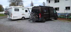 | Auf dem Weg von Ruhpolding nach Velden am Wörthersee sind wir über die A10 gefahren. Ausser einer Baustelle vor einem Tunnel, sind wir super durchgekommen. Dann von der Autobahn runter und in Richtung Velden. Direkt am Ortseingang sahen wir, das im Moment Osterwochenende war und direkt im Ort am Wörthersee einige Stände aufgebaut waren. Also zuerst einmal den Stellplatz angefahren und informiert wie das ganze hier so läuft. Der Stellplatz liegt direkt zusammen mit einem Abschlagplatz für Golfer mit einer Bude in dem man einiges rund um Golf kaufen und wo man die Stellplatz Gebühr bezahlen kann. Da wir auch Strom wollten, sollen wir erst am nächsten Tag bezahlen, wegen des Stromverbrauches. Laut ProMobilApp soll der Platz € 16,00 und jeder Erwachsene € 3,00 kosten, also bei uns € 22,00. Auf den Schildern aber war mit Klebeband der Preis überklebt und es soll jetzt € 25,00 inkl. 2 Erwachsene kosten. Beim Rundgang musste ich dann feststellen, das Strom nur mit einem normalen Schukostecker möglich ist, also Adapter rausgeholt und angeschlossen. Die Duschen sind draussen und nur mit ein paar Brettern umbaut, also Duschen draussen. Damit du aber Warmwasser zum Duschen bekommst, musst du Chips am Automat einlösen. Duschen in Warm für 3 Minuten = € 2,50, meiner Meinung nach viel zu teuer. Die Toiletten lassen auch zu wünschen übrig, nicht gerade sauber und in die Jahre gekommen. Trinkwasser gibt es nur an einer Zapfstelle die man zu erst einmal suchen muss. Grauwasser kann man nur über einen kleinen Gulli von ca. 20x20 cm größe ablassen und um die Chemietoilette zu entleeren habe ich gar nichts gefunden. Die Stadt selber ist überschaubar. Die Preise sind natürlich entsprechend, wie z.B. die Kugel Eis die man von € 2,10 bis € 2,50 bekommt. Fazit: Der Platz ist für eine Nacht ok, aber für mehrere Tage nicht geeignet.