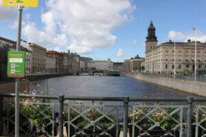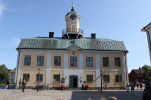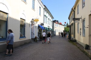 Am Stellplatz angekommen, konnte man nur mit einem Code die Schranke öffnen. Aber woher den Code bekommen. Die Beschilderung war nur dürftig und wenn uns nicht ein anderer Wohnmobilist gesagt hätte wie es funktioniert, dann hätten wir noch lange hier gestanden. Man muss sich vorher über ein App anmelden und das am besten schon ein paar Tage früher als man dort hinmöchte. Unser Glück war, das der komplette Stellplatz schon ausgebucht war und wir zuerst einmal nicht wussten wo wir uns hinstellen konnten. Kurz in Google Maps und der ProMobil App nachgesehen und einen Campingplatz in der Nähe gefunden. Also ab zum Söderköpings Camping, zum Glück war er nicht weit entfernt vom Göta Kanal. Dort angekommen, war gerade Mittagspause und die Rezeption war nicht besetzt. Aber an der Rezeption gab es ein Blatt mit der Platzeinteilung und wo man sich hinstellen könnte. Also Platz ausgesucht und später an der Rezeption bezahlt. Der Platz war soweit in Ordnung, nur da wo wir standen gab es keinen Sat-Empfang und auf der anderen Seite der angrenzenden Straße jagden abends ein paar Jugendliche mit ihren aufgemotzten Autos laut lärmend hin und her. Nachdem wir uns eingerichtet hatten, ging es dann ins Städtchen und an den Göta Kanal. Ein sehr schönes kleines Örtchen mit vielen kleinen Geschäften. Am Rathausplatz gibt es eine leckere Eisdiele mit dem Namen Konfekthörnan, es geht in einen Keller mit vielen leckeren Eissorten. Danach einmal quer durch den Ort und anschließend wieder zum Stellplatz den Tag ausklingen lassen.