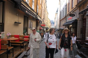 Wir haben dann aber kurzfristig erfahren, das der Platz nicht mehr existieren soll und am Vortag in Askersund sagte man uns, das in den nächsten Tagen in Stockholm eine größere Veranstaltung stattfinden soll und deshalb es schwer werden soll einen Stellplatz zu finden. Also mussten wir umdisponieren. Mein Schwager fand dann einen Campingplatz in Bredäng bei Stokholm. Hier wollten wir drei Nächte bleiben um Stockholm so richtig zu geniesen. Der Platz war schon sehr voll, aber wir haben noch zwei Stellplätze bekommen. Auf dem Platz gab es einen Einkaufladen und Sanitäre Einrichtungen die zwar nicht die besten waren, aber sauber. Als erstes ging es aber mal nach Bredäng selber um zu sehen was es dort gab. Ein paar Einkaufsgeschäfte und die Bahnverbindung in Richtung Stockholm. Am zweiten Tag ging es mit der Bahn in ca. 20 Minuten nach Stockholm. Zuerst sind wir in die Altstadt Gamla Sta, danach zum Wachwechsel mit Musik am Schloss und anschließend noch über die Einkaufsstraßen Stockholms. Zwischendurch bekamen wir Hunger und wir suchten uns ein Cafe. Was wir nicht wussten war, das wir wohl in einem Feinschmecker Cafe waren. Für zwei Sandwiches und einen großen Becher frisch gepressten Orangensaft waren wir fast € 50 los. Teuer aber sehr sehr lecker. Man gönnt sich ja sonst nichts. Am nächsten Tag sind wir dann nochmal in Richtung Stockholm, um zum SkyView zu fahren. Von hier aus kann man oben auf der Kugel über ganz Stockholm und noch viel weiter sehen. Man sollte aber am besten ein bis zwei Tage vorher schon ein Online Ticket buchen, damit man sicher ist nicht lange warten zu müssen. Am letzten Tag ging es dann zur Rezeption bezahlen, wir wussten zwar das es nicht ganz billig war, aber wir haben für die drei Nächte etwas über € 130 bezahlt.