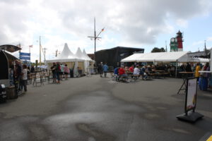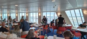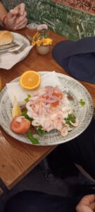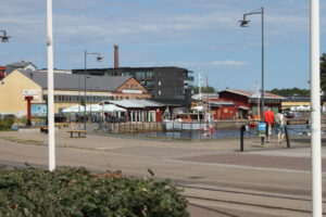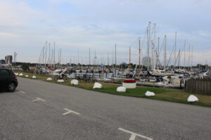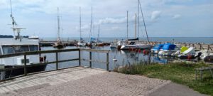 Teilweise so stark das man nur eingeschränkt sehen konnte. Im Hafen angekommen ging es dann auf den Stellplatz. Da es sehr nebelig war, war es auch sehr feucht und die Stellplätze etwas aufgewicht, aber es ging noch, da einige teilweise geschottert waren. Die Sanitären Einrichtungen waren nur 08/15. Gegen Mittag lichtete sich dann der Nebel und der Hafen und die Insel Hanö wurden sichtbar. Im Hafen selber gibt es ein gemütliches Restaurant mit leckeren Gerichten.