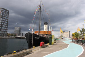 Für einen Stellplatz sollte man sich am besten einige Tage vorher schon Online anmelden, da der Platz schnell besetzt ist. Im Hafengebiet selber gibt es nicht viel zu sehen. Aber ein paar Minuten zu Fuß in Richtung Vorort von Malmo, gab es eine kleine Einkaufsstraße. Am nächsten Tag sind wir dann per Bus nach Malmö um eine Stadtbesichtigung zu machen. Die Busverbindung war schnell und einfach. Malmö selber ist recht schön und um alles zu sehen benötigt man bestimmt mehr als nur einen Tag. In der Innenstadt wurde gerade für ein Open Air Spektakel Bühnen und Equipment aufgebaut und die ersten Proben liefen schon. Nachdem wir die Innenstadt durch hatten, sind wir noch in Richtung Schloss von Malmö. Dort angekommen waren wir sehr enttäuscht. Ein Schloss stell ich mir anders vor. Den Besuch kann man sich locker sparen. Also wieder in Richtung Innenstadt von Malmö und anschließend wieder mit dem Bus zurück zum Stellplatz. Abends sind wir dann noch einmal durch den ganzen Hafen spaziert und haben uns Kopenhagen im Sonnenuntergang angesehen.