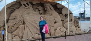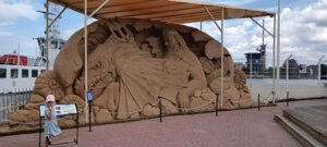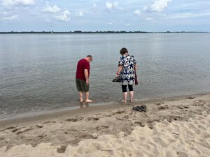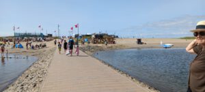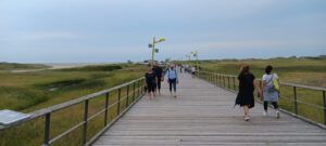 Wir haben es fast nicht wahr genommen als wir durch ein kleines enges Örtchen fuhren und plötzlich wieder deutsche Verkehrsschilder sahen. Heute sollte es auf den Reisemobilhafen Sankt Peter-Ording gehen. Meine Frau wollte Sankt Peter-Ording nochmals erkunden, da sie hier als kleines Kind oft war. Aber zuerst einmal einen Stellplatz gesucht und auch gefunden. Die Parzellen waren etwas klein und eng und man musste mehrfach rangieren bis man endlich richtig stand. Der Platz selber war geschottert und relativ gerade. Die Sanitären Einrichtungen waren großzügig und sauber. Nachdem wir uns eingerichtet haben, wollten wir in Richtung StrandGut Resort. Wir haben einen Bus genommen, das es bis dorthin gut 3 Km waren. Dort angekommen gab es viele kleine Geschäfte und Restaurants. Wir haben uns dann für Gosch entschieden, sehr lecker, gr0ßzügis Restaurant und nette Bedienung. Anschließend ging es dann noch bis zum Strand und mit den Beinen bis ins Wasser. Da gerade Ebbe war, war der Weg bis zum Wasser ziemlich weit. Zurück ging es dann wieder mit dem Bus, leider mussten wir etwas länger warten, da uns gerade der Bus vor der Nase weg.