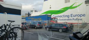| Da wir am nächsten Tag mit der Fähre von Rostock nach Trelleborg (Schweden) fahren wollten, haben wir am Abend vorher noch einen Stopp auf dem Parkplatz zur Warnow um so früh als möglich zur Fahre zu kommen.