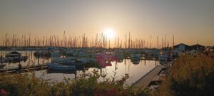 Wir hatten Glück das wir noch genau zwei Stellplätze ergattern konnten. Die Sanitären Einrichtungen waren vom feinsten und sehr sauber. Bogense bietet alles was man braucht. Supermarkt, Kaffees, Eisdielen, Boutiquen usw. Abends konnte man im Hafen noch einen sehr schönen Sonnenuntergang geniesen.